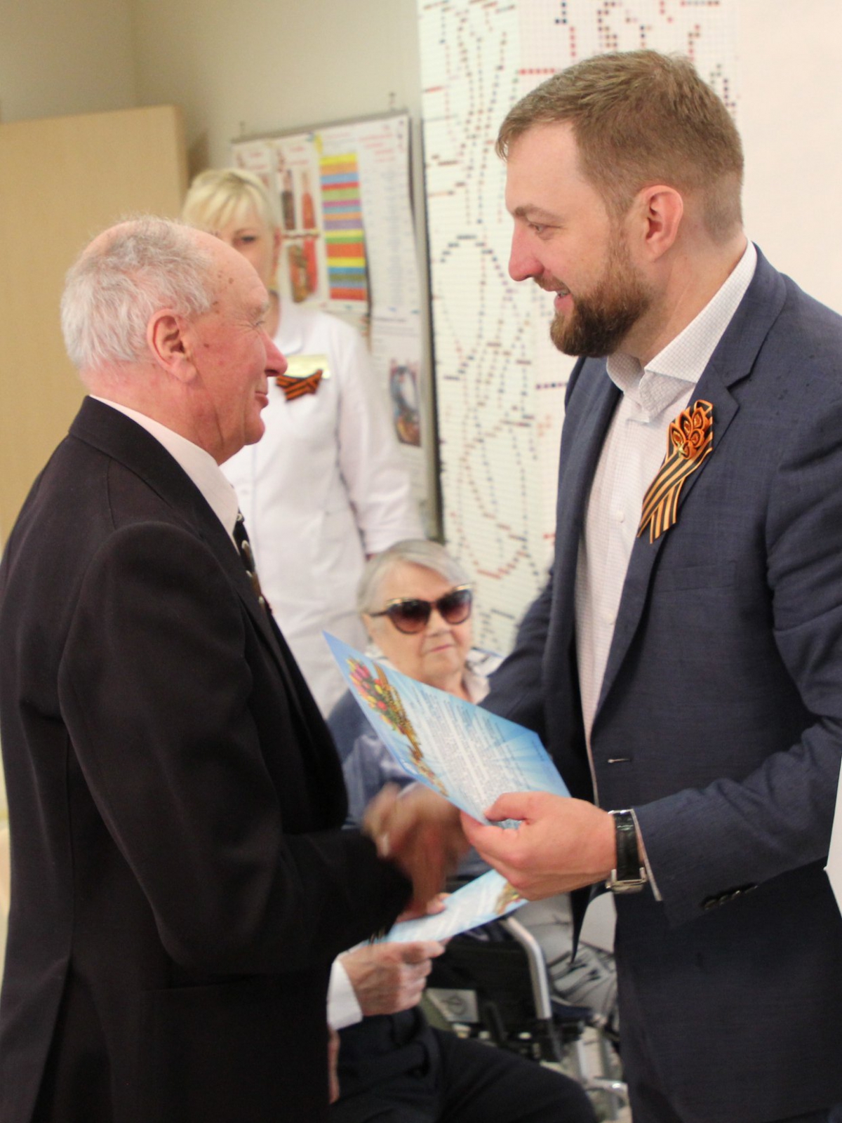 Не хватает слов, чтобы выразить насколько велика наша благодарность, вам ветераны, за подвиг, совершенный в годы Великой Отечественной войны! Мы поздравляем всех с Великим Праздником Победы! Сегодня, сотрудники во главе с директором Пансионата А. В. Мецлером поздравили каждого ветерана, поблагодарили за мужество и героизм. Крепкого здоровья вам, наши дорогие, мирного неба над головой и хорошего настроения! А мы, все сделаем для того, чтобы вы были счастливы!