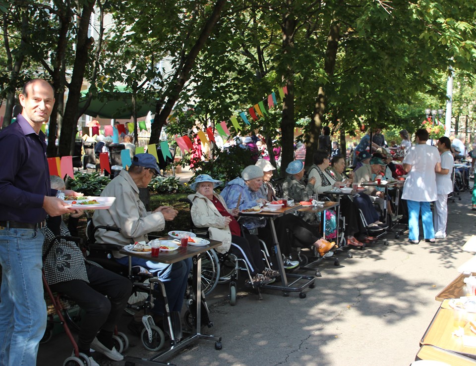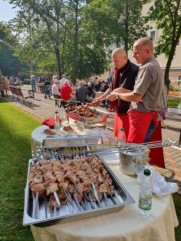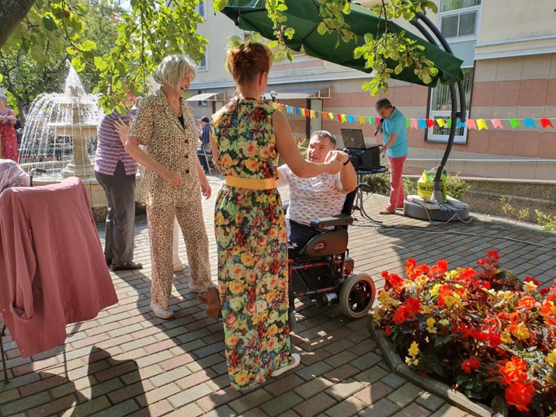 В такую прекрасную погоду так и хочется оказаться на природе и мы подготовили для наших ветеранов приятный сюрприз! Сегодня мы всей большой семьей собрались во внутреннем дворе повеселиться и потанцевать. Аромат шашлыка, приятные мелодии слышались с утра в пансионате.