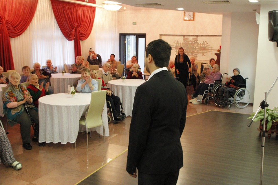 Вновь своим вниманием радует ветеранов Международный Союз Поэтов. Сегодня к нам в гости приехал лауреат международных конкурсов, выпускник Академии им. Маймонида тенор - Роман Шапиро, поэтесса Татьяна Медведева и Наталья Преображенская, пианист Нариман Музафаров - лауреат международных конкурсов, выпускник Музыкального училища имени Гнесиных и Академии им. Маймонида.