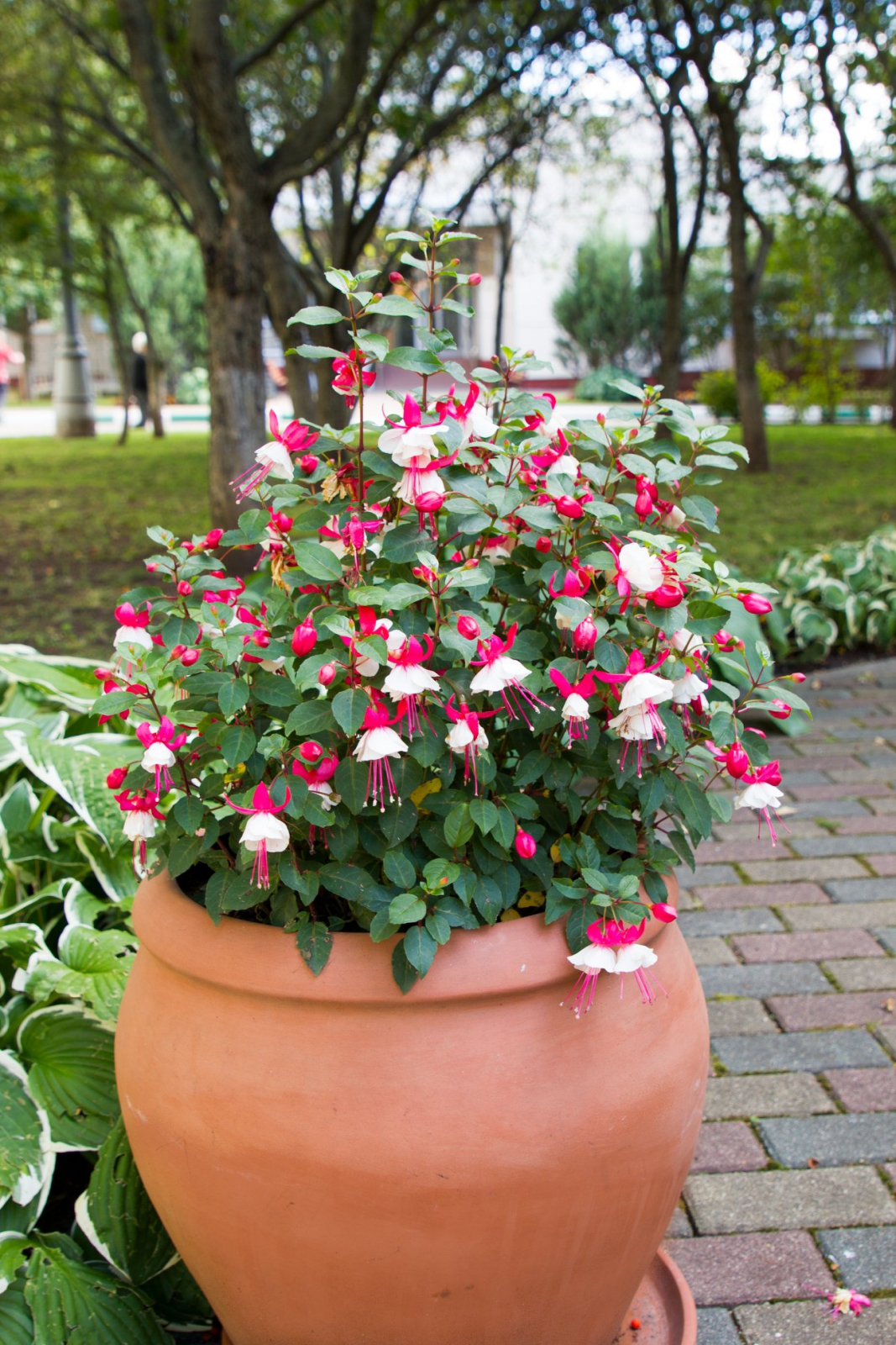 У нас фуксия занимает достойное место во внутреннем дворе, украшая площадку с фонтаном. Эти маленькие кустики посаженые в отдельные глиняные кадки декоративны во всем: от неповторимых ярких цветков необычной формы, до яркоокрашенных плодов.
