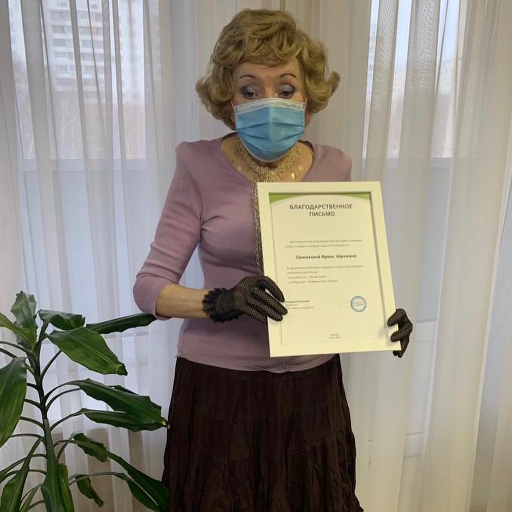 Недавно мы рассказывали, что солистка ансамбля "Будь здоров!" Ирина Абрамовна Тименкова начала осваивать просторы интернета и активно участвовать в программах благотворительного фонда "Старость в радость". Она организовывает и проводит онлайн-мероприятия для ветеранов из других учреждений, проводит музыкальные конкурсы, викторины, читает стихи. А сегодня настал очень трогательный момент, из благотворительного фонда пришло благодарственное письмо – Ирина Абрамовна была в полном восторге, и даже немного прослезилась.