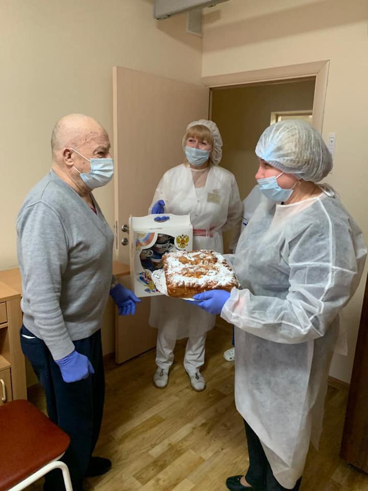 Поздравляем Фёдора Михайловича Савкина с 90-летием. Такой «скромный» юбилей Фёдор Михайлович встречает в прекрасном настроении и, конечно, с фирменным пирогом от шефа.