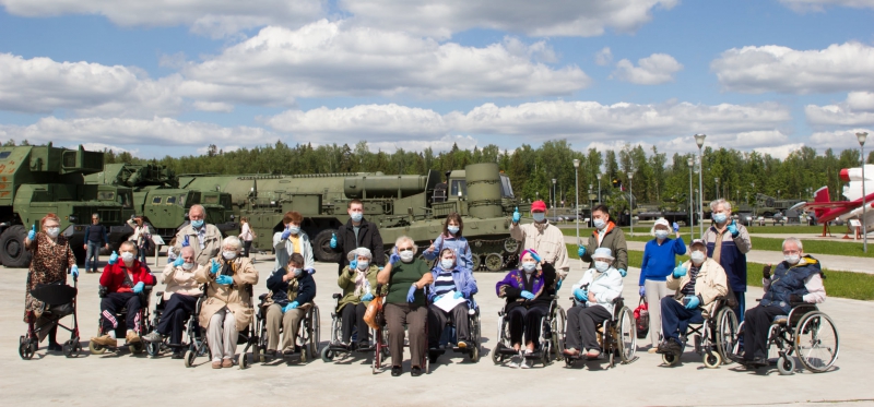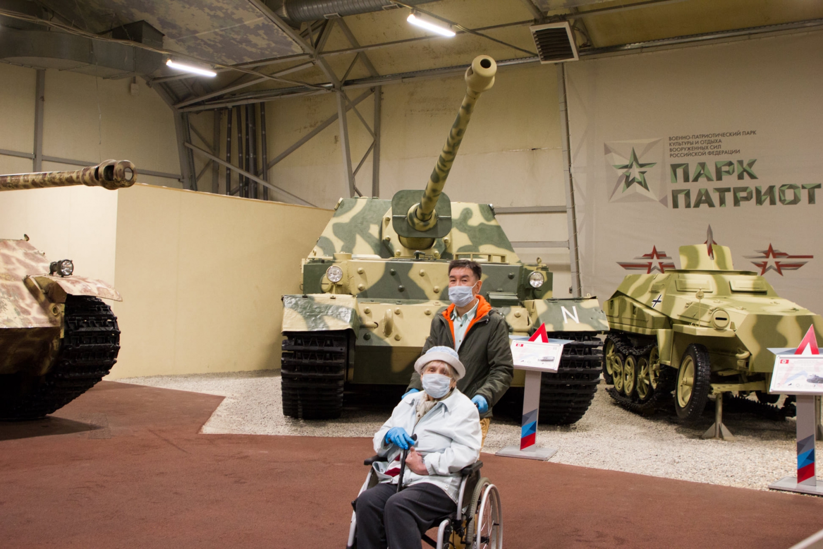 Уникальный подмосковный комплекс с говорящим названием «Патриот» встретил маломобильных ветеранов прекрасной погодой. Парк впечатляет не только своими размерами, но и количеством экспонатов. Здесь так много всего интересного, что за раз и не обойти. По подсказке более опытных товарищей, для первого раза, мы решили посетить Технический центр. Здесь хранится уникальное, по многим параметрам лучшее в мире, собрание бронетанковой техники. Не покидая экспозиции, можно пронаблюдать развитие инженерной мысли, на примере техники из 14 стран мира – очень интересно! Поэтому, если вдруг есть такая возможность, то обязательно рекомендуем к посещению!
