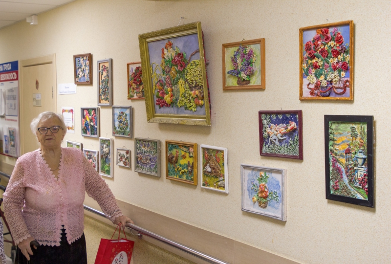 Поздравляем Людмилу Константиновну Томину с открытием персональной выставки «Цветы жизни». Людмила Константиновна уже давно увлечена картинами из соленого теста, и не оставила любимое хобби после переезда в геронтологический центр. Получилось даже наоборот, после того как Людмила Константиновна показал уже готовые работы ветеранам, они предложили ей организовать выставку и рассказать о своем увлечении. Картины всем настолько понравились, что по итогам вернисажа собралась целая группа ветеранов, которые хотят попробовать это занятие. Так в нашем Доме появился ещё один вид творчества и ещё один повод улыбнуться, наслаждаясь его плодами.