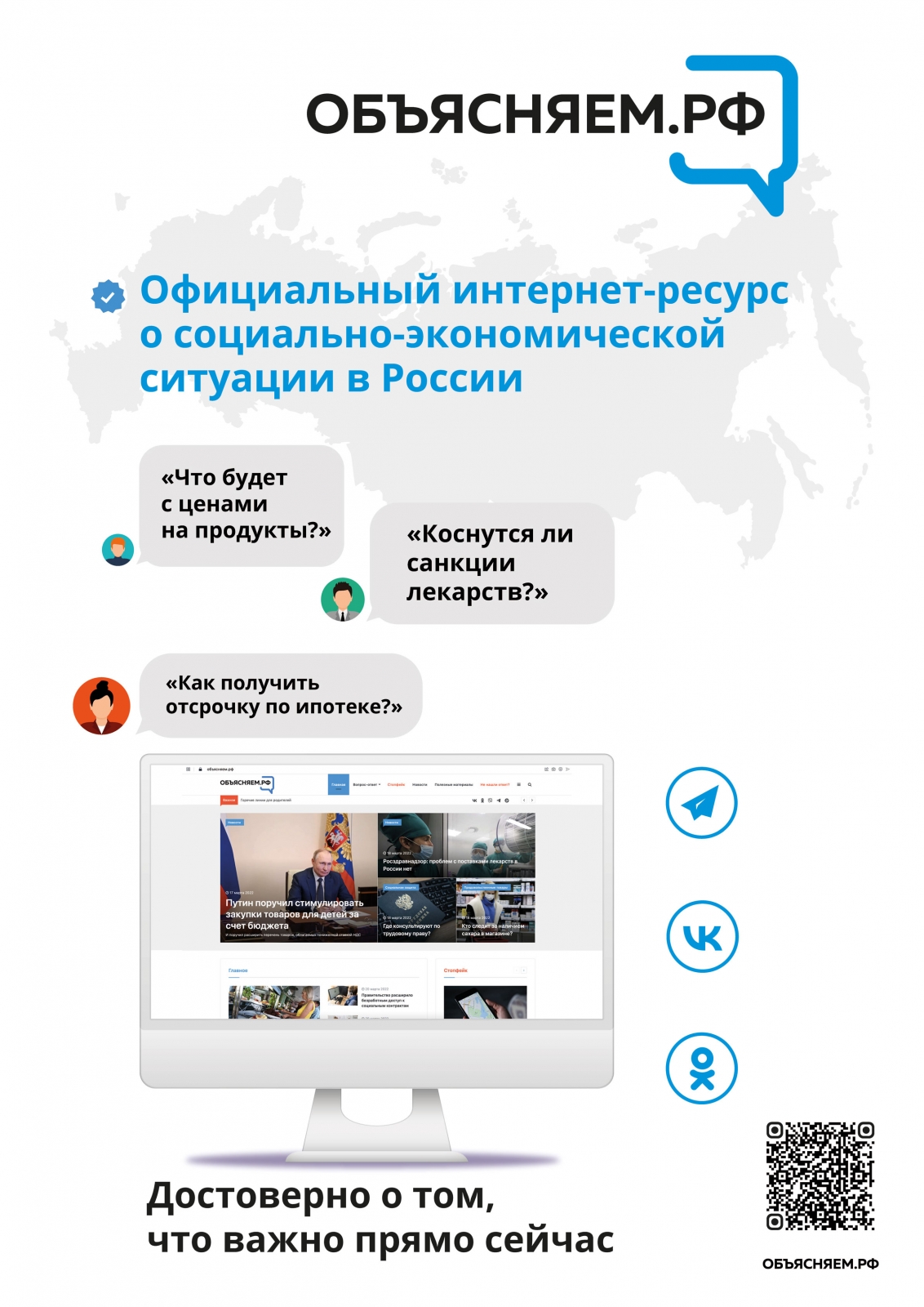 В социальных сетях и информационных ресурсах Проекта публикуются экспертные комментарии и верифицированные ответы на широкий круг социально-экономических вопросов граждан, возникающих ввиду текущей геополитической обстановки. Деятельность проекта обеспечивает открытый доступ к достоверной информации и сдерживает распространение фейковых новостей.