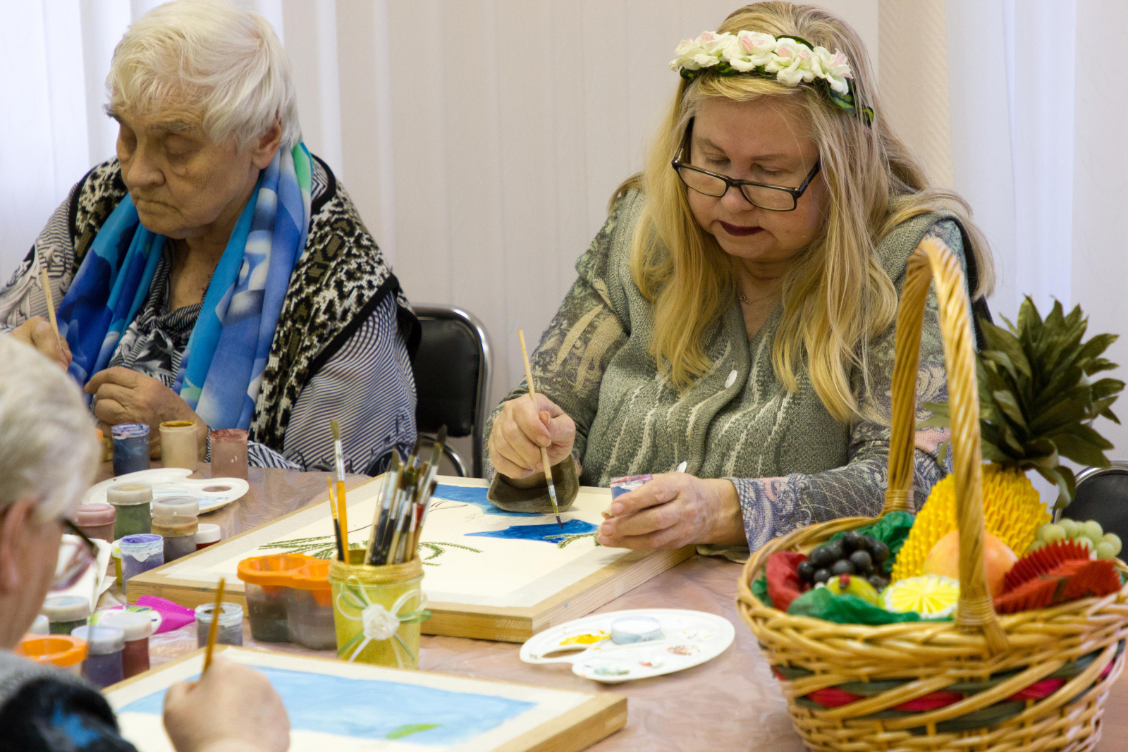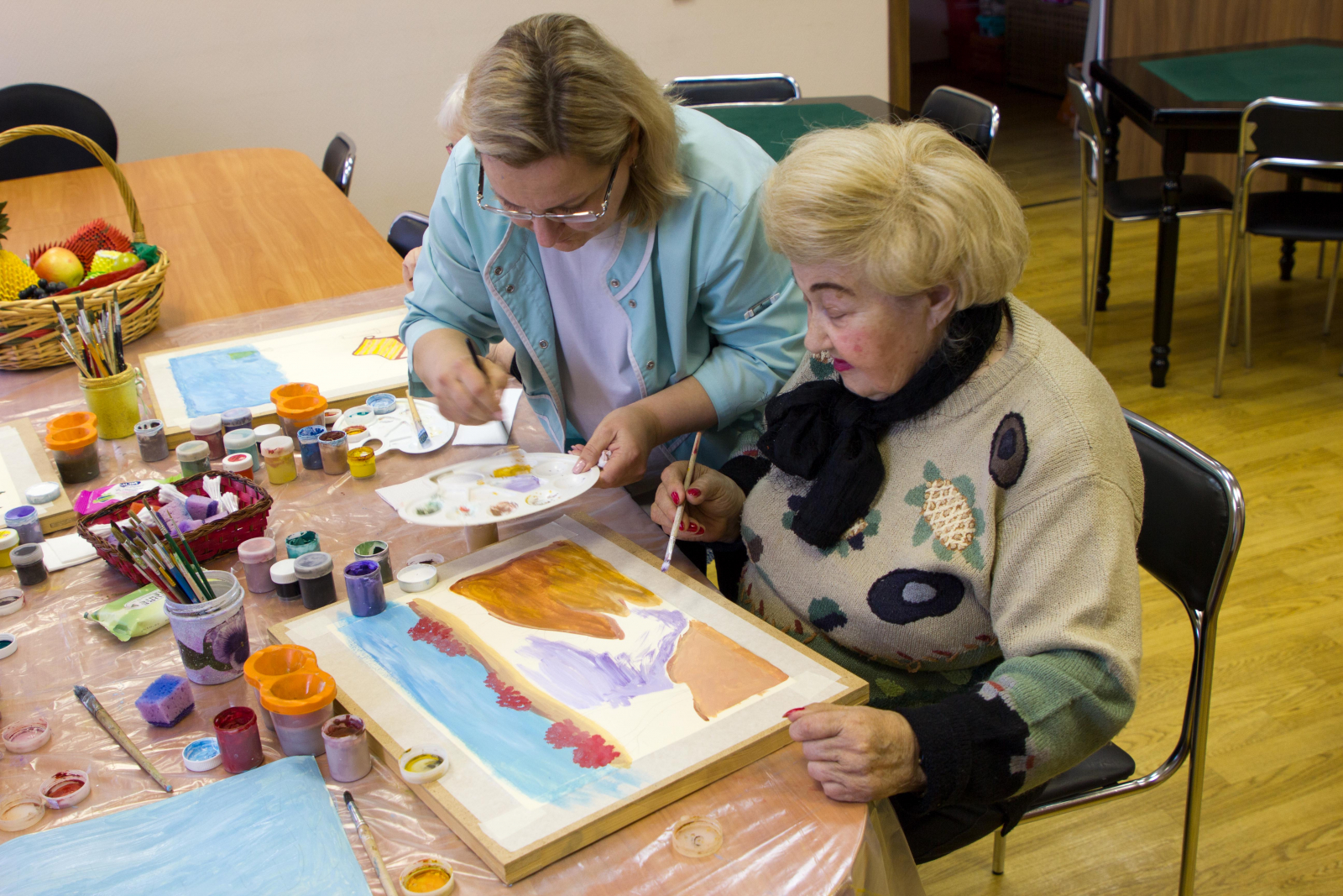 Осень – это отличная пора, чтобы заняться творчеством. Поэтому Клуб любителей изобразительного искусства провел открытое занятие и пригласил всех жителей нашего центра присоединяться. Посмотреть, как проходят встречи клуба пришли и сотрудники, ведь это действительно интересно узнать, как люди знакомятся с живописью.
