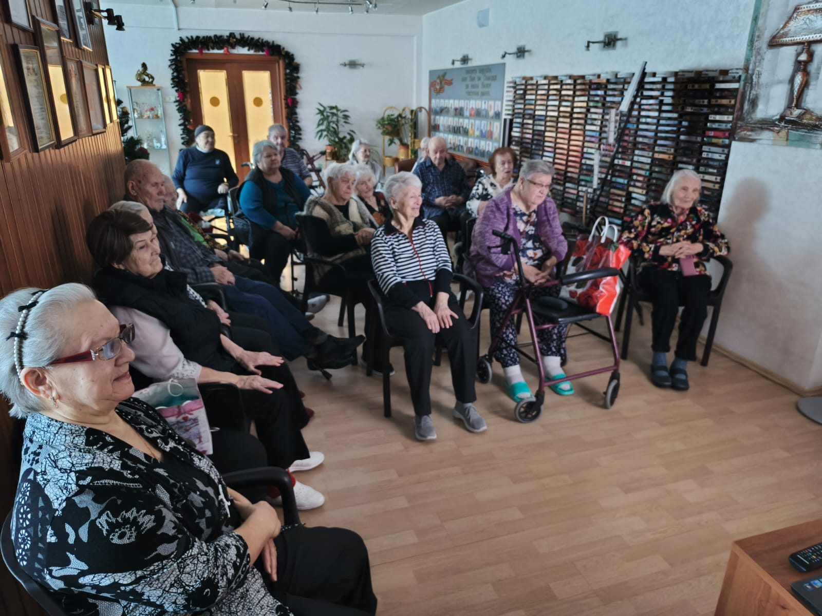 Наши друзья из Благотворительного фонда «Старость в радость» часто проводят онлайн-концерты, и жители Центра с удовольствием посещают эти мероприятия. Каждый раз, чтобы насладиться любимой музыкой, в библиотеке собирается группа меломанов.