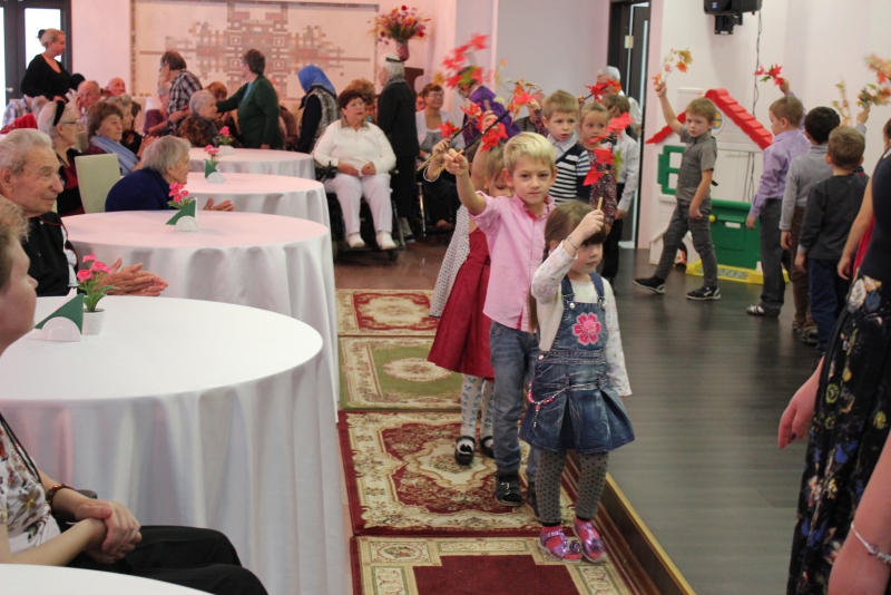 С Днем старшего поколения приехали поздравить наших ветеранов очаровательные воспитанники детского сада № 790