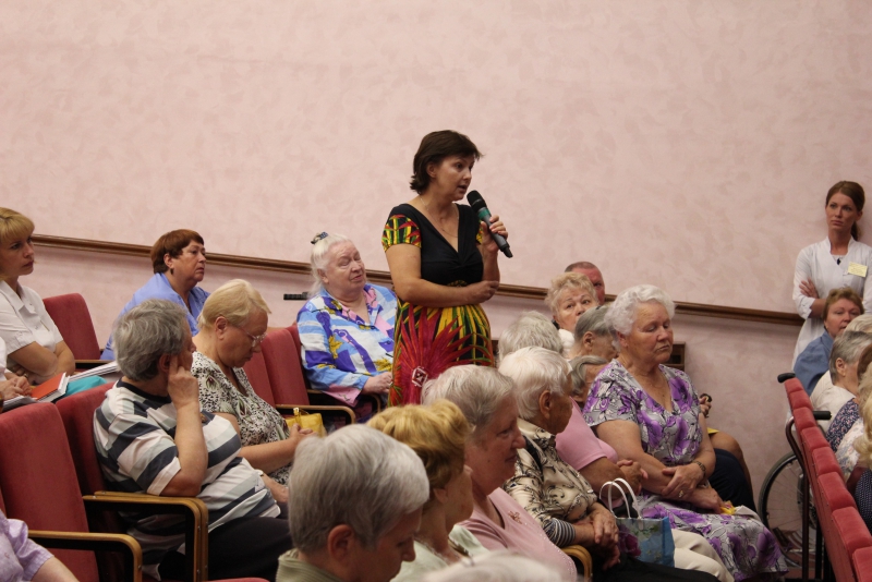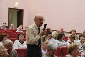 Проживающие получили возможность задать представителю Департамента все интересующие их вопросы, среди которых были: проблема прикрепления проживающих пансионата к больницам, возможность продления временного проживания, привлечение в штат пансионата узких специалистов, перспектива установления Skype-консультаций и т.д.
