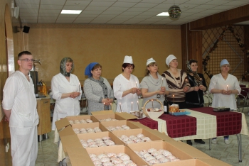 В Великую субботу в 19.00 прошло освящение приготовленных к праздничному столу куличей и пасхальных яиц для каждого жителя Пансионата.