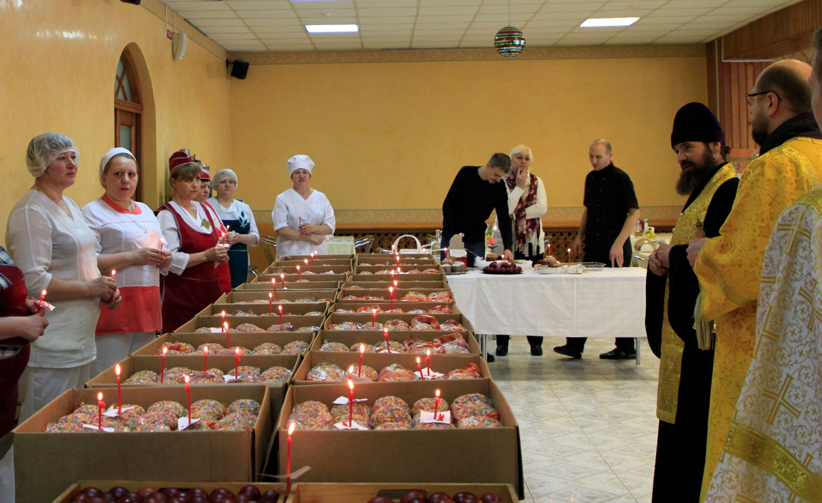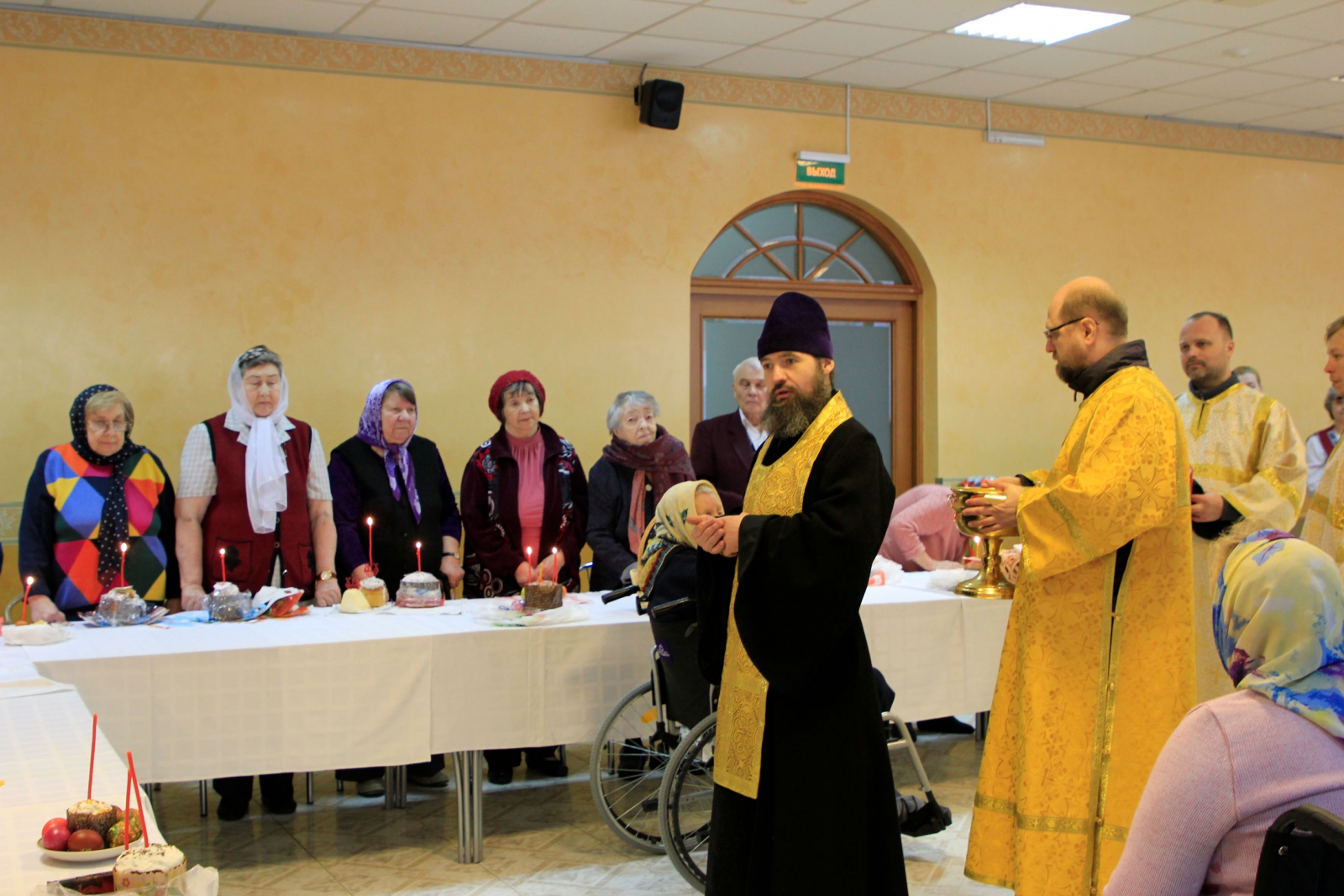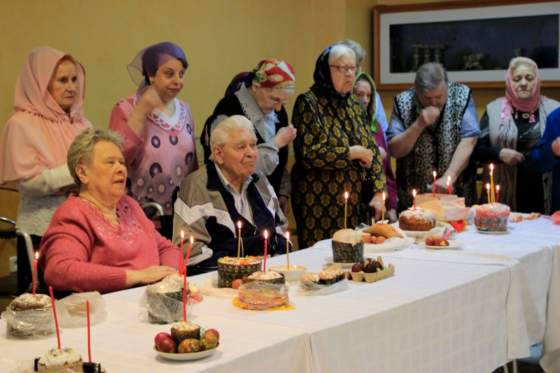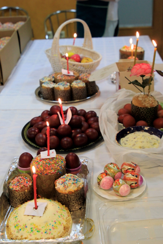 В Великую субботу наш пансионат посетил Настоятель Храма Иверской иконы Божией Матери в Беляево –Игорь Краев. Иерей провел обряд освящения куличей и яиц в зале ресторана.