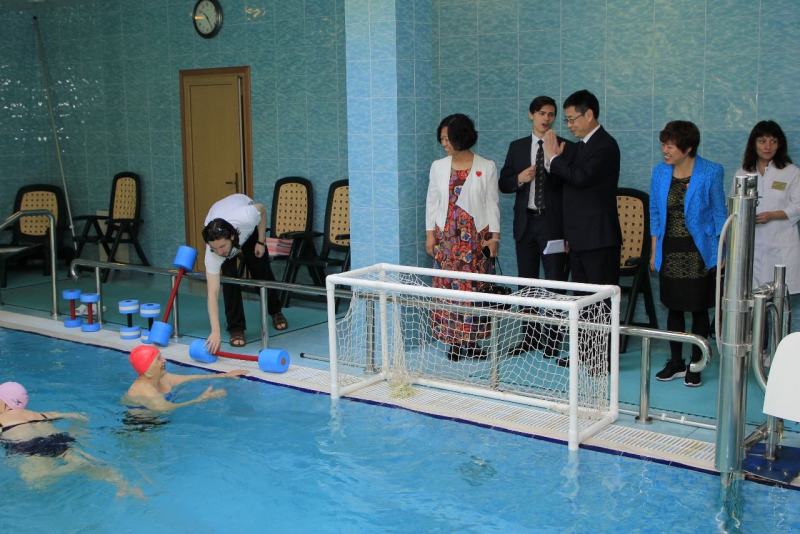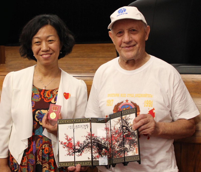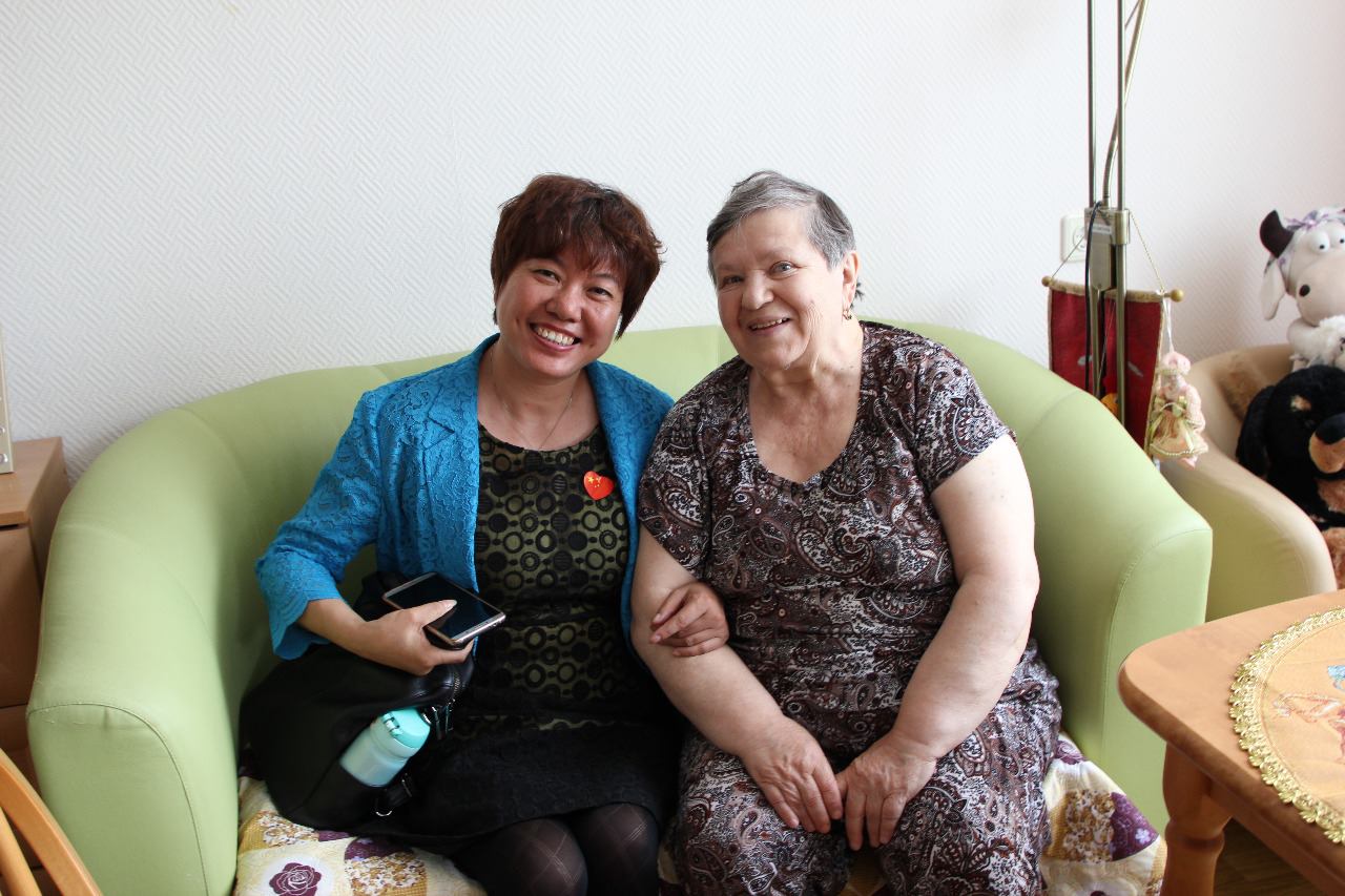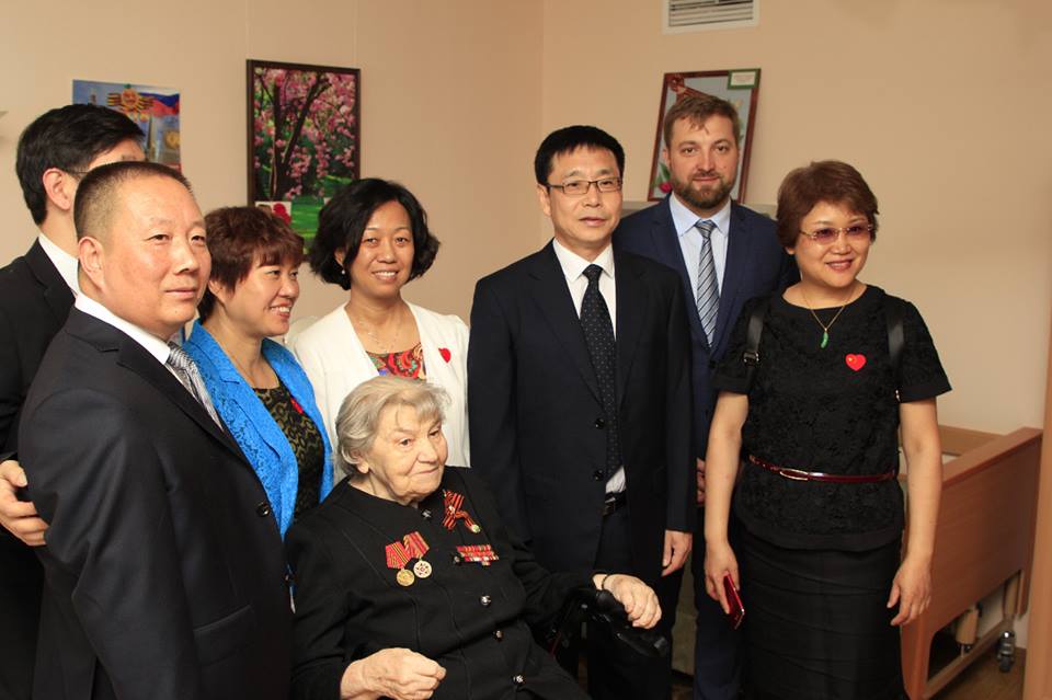 После обзорной экскурсии по нашему Дому гости встретились с ветеранами. Г-н Фанг Бо (Секретарь Партийного Комитета пекинского административного центра по вопросам социального обеспечения) рассказал о том, как осуществляется уход за пожилыми людьми и продемонстрировал видеоролики об одном из домов престарелых Пекина.