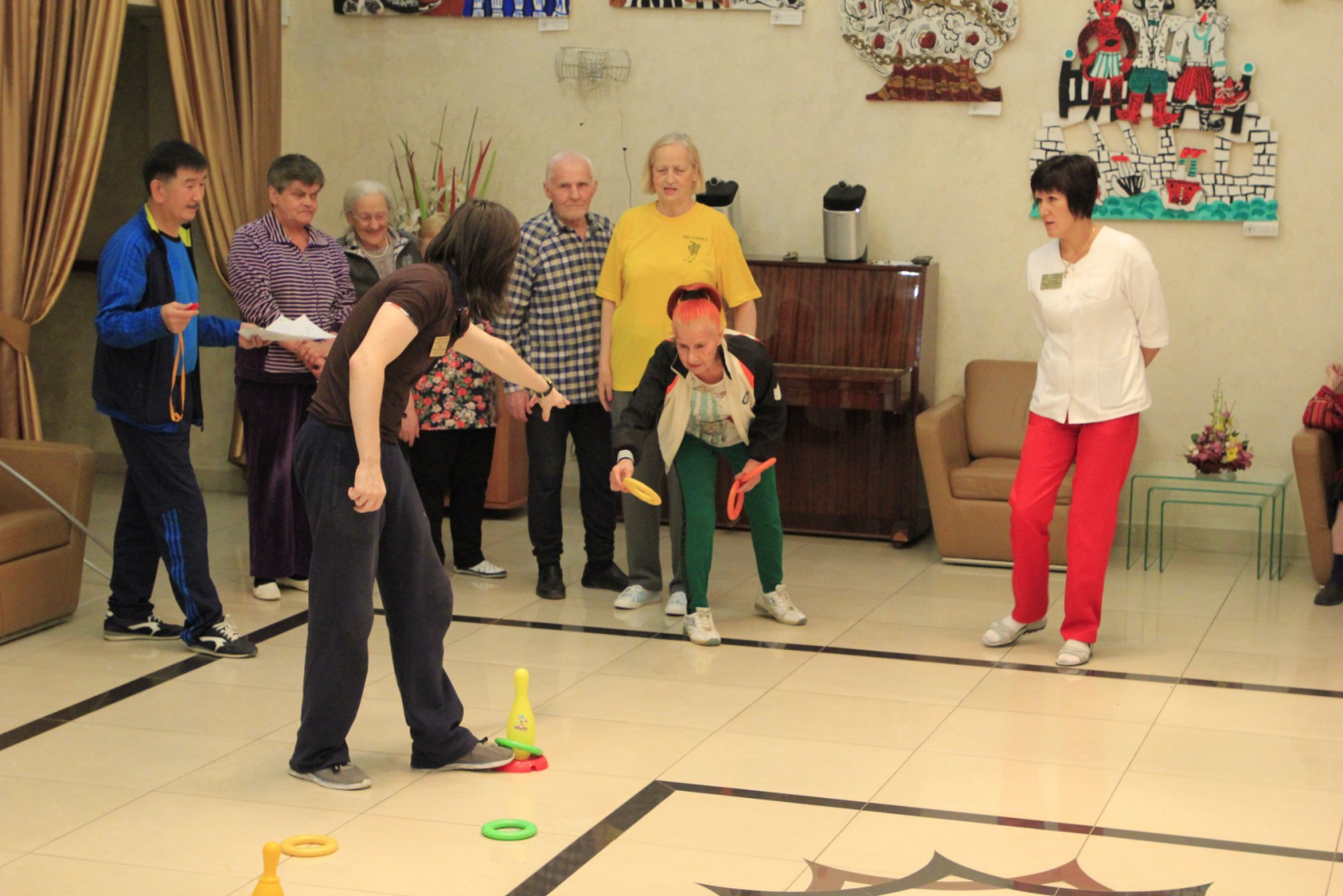 В глазах азарт, в руках снаряд и мысли только о победе. Так в пансионате проходят спартакиады среди ветеранов. Зрители знают каждого спортсмена лично, поэтому поддержка с «трибун» просто колоссальная.