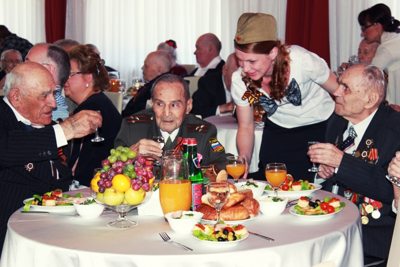 Участников и ветеранов ВОВ поздравляли студенты МИРЭА со спектаклем “Дороги войны”, воспитанники ДДИ №7 с новым номером военной тематики на банкете, народный артист России и Татарстана Ренат Ибрагимов с любимыми песнями.