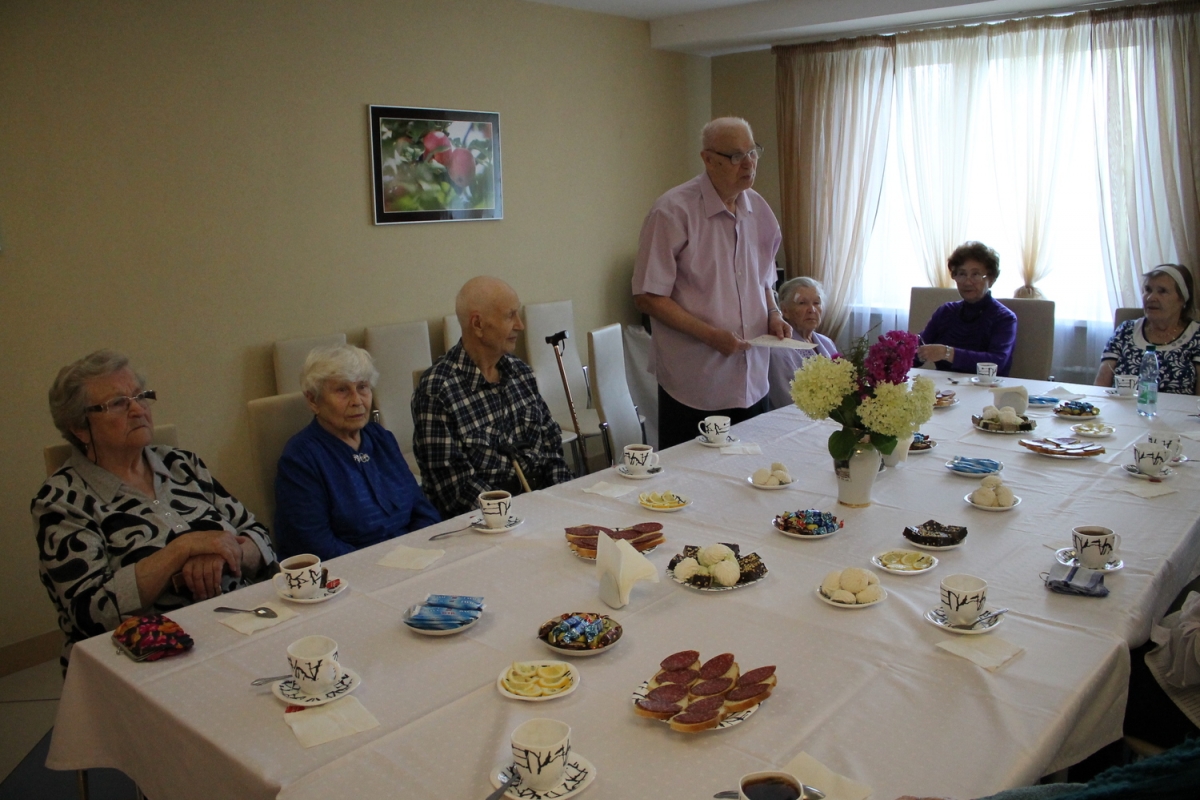 По традиции в конце каждого месяца в нашем пансионате проходит День именинника. Все, кто было рожден в июле, собираются вместе и пьют чай со сладостями, поют песни под аккордеон, читают стихи Великих русских поэтов.