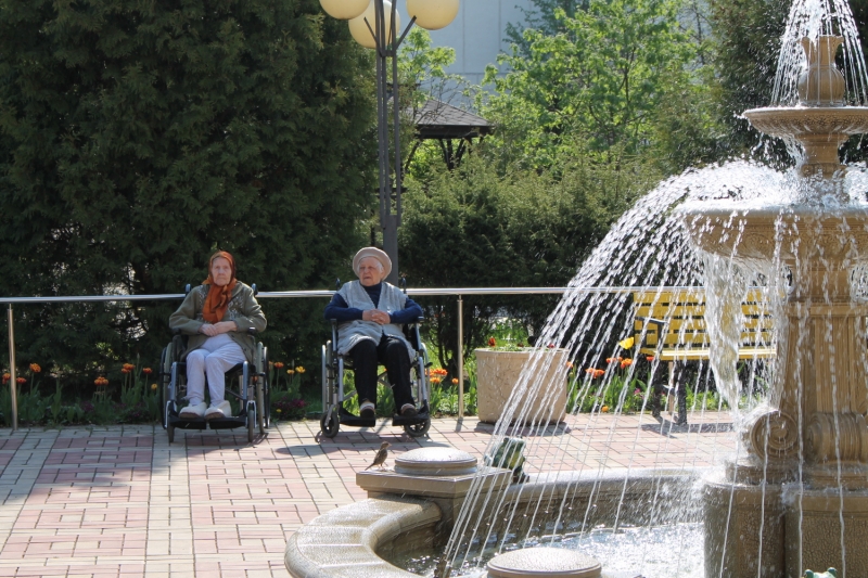 В воскресенье провели музыкальные посиделки у фонтана. Любимец ветеранов - баянист Евгений Владимирович Мироненко всегда зажигает в душах наших ветеранов огонь. Проживающие с удовольствием пели, танцевали под частушки, рассказывали юмористические истории. Трогательно было созерцать, как «Коньковцы» радовались жизни.