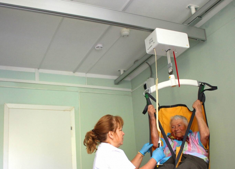 Отделение оснащено необходимыми техническими средствами: подъемными системами, опорами ходунками, тростями, креслами – колясками, в том числе с санитарным оснащением, противопролежневыми матрацами, многофункциональными кроватями. Для срочной неотложной помощи в каждой комнате имеется кнопка вызова медицинского персонала. В отделениях предусмотрены поручни для удобства перемещения клиентов.