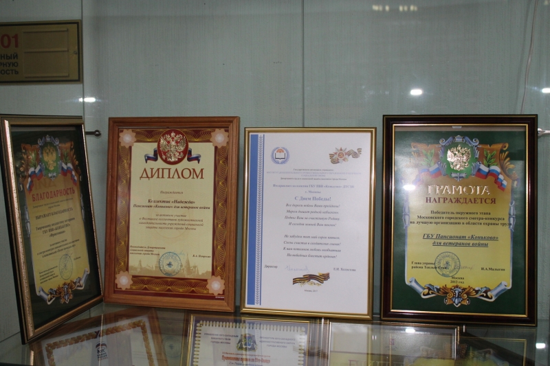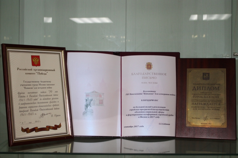 Наш пансионат не раз становился победителем различных общегородских конкурсов г. Москвы. У нас есть Памятные медали, Дипломы, Грамоты и благодарственные письма как от руководства Департамента труда и социальной защиты населения г. Москвы, так и от руководства Правительства г. Москвы, Мэра г. Москвы и Президента Российской Федерации!