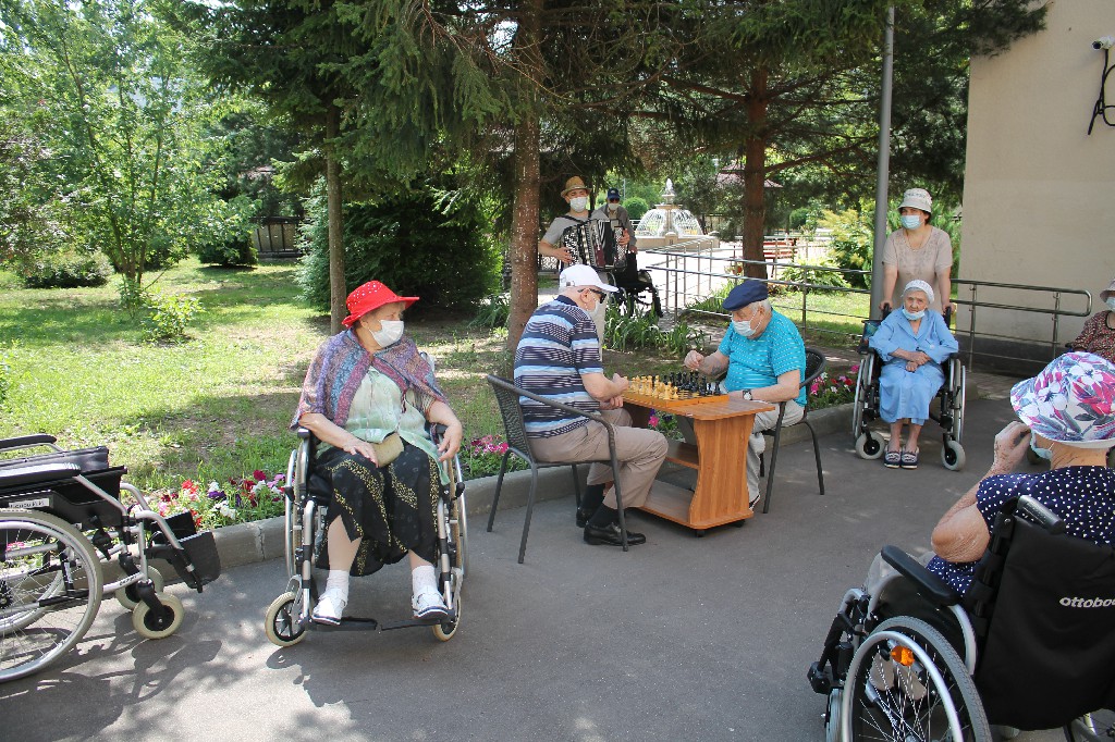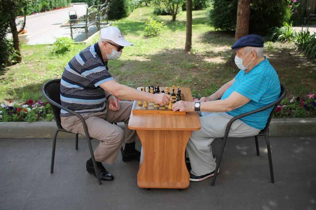 20 июля ежегодно отмечается Международный день шахмат. В нашем пансионате «Коньково» мы тоже присоединились к замечательному празднику и отметили его турниром между ветеранами. Под музыку и поддержке болельщиков наши доблестные ветераны проводили «сражение» за шахматной доской. Иван Ильич Попов и Иван Петрович Тришин оказались достойными противниками и не желали сдаваться. Турнир завершился ничьей, участникам вручили сладкий приз и пожелали новых побед.