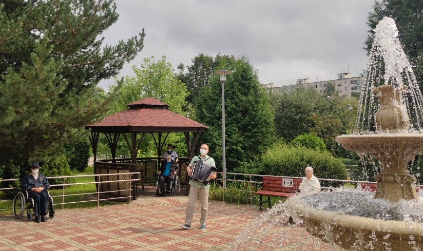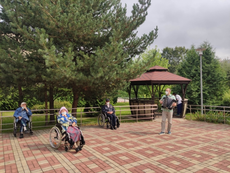 «Музыка, музыка, музыка – ты способна заставить нас жить»! Психологи утверждают, что музыкотерапия служит превосходным средством для того, чтобы поддерживать в норме как психологическое, так и физическое здоровье людей преклонного возраста. В связи с этим в нашем центре культорганизатор – Е. В. Мироненко ежедневно проводит мини концерты для ветеранов. В летний период ветераны занимают места у фонтана и с большим удовольствием слушают мелодии своей молодости. А более активные подпевают и составляют конкуренцию в исполнении своих любимых песен. «Песни нашего времени, настолько мелодичны и красивы, что невозможно их просто слушать, хочется двигаться и петь всей душой»,- делится своими чувствами ветеран центра М.А. Смолько.