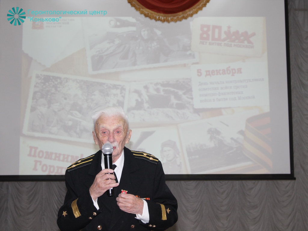 5 декабря День Воинской Славы России — начало контрнаступления советских войск в битве под Москвой. Это событие стало поворотной точкой в ходе Великой Отечественной войны. Победа под Москвой имела огромное военное и политическое значение. Она развеяла миф о непобедимости гитлеровской армии и надежды фашистов на «молниеносную войну». В Центре прошло литературно-музыкальное мероприятие, посвященное этому событию. В ходе мероприятия прозвучали стихи и песни о войне, которые сопровождались документальной и художественной хроникой тех событий. К ветеранам обратились директор Центра - Г.И. Михайличенко и президент Центра - В.И. Ведомцев: «Проходят годы... Все меньше остается участников обороны Москвы. Память об их мужестве и героизме в годы суровых испытаний жива и будет жить дальше. Жители столицы с особой отвагой и самоотдачей защищали свой город. Каждый горожанин от мала до велика приложили все усилия для того, чтобы отстоять Москву. Низкий поклон вам, дорогие ветераны! В нашем Центре проживают участники обороны Москвы, награжденные медалью «За оборону Москвы» - Курляндцев Г.С., Глушкова М.Д., Покровская З.С., Мушенко Б.А. Пусть ваши доблесть и отвага будут ориентиром для будущего поколения. От всей души желаем Вам крепкого здоровья, счастья, благополучия и добра!»