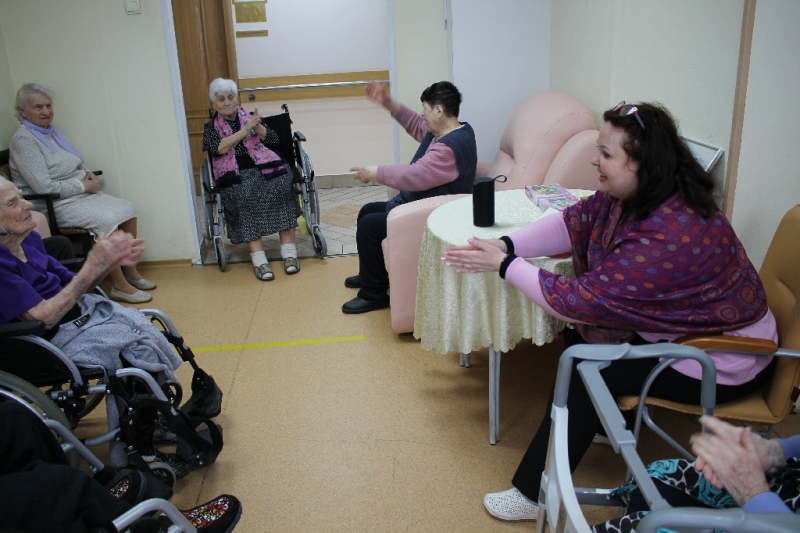 Различные по характеру и настроениям музыкальные произведения стимулируют настроение ветеранов, помогают творчески использовать пластическую выразительность. Раскрепоститься и ощутить возможности своего тела можно с помощью разнообразных танцевально-двигательных игр. Они также помогают проживающим снижать тревожность, улучшать настроение и повышать социальную активность.