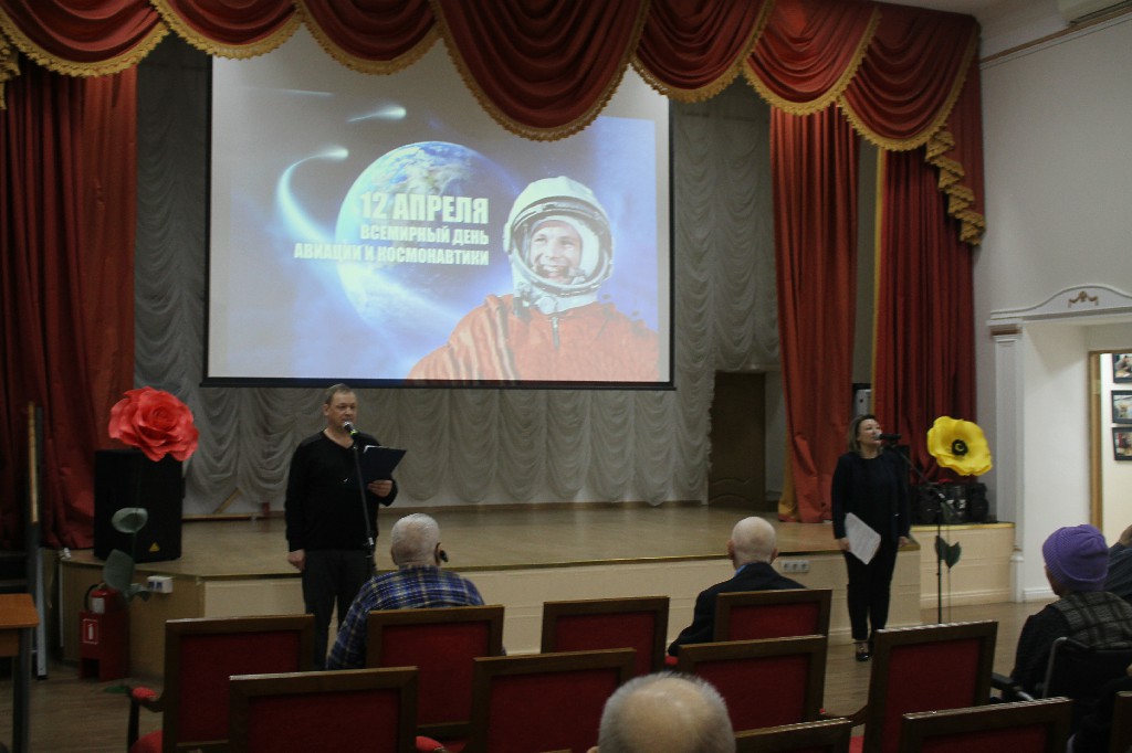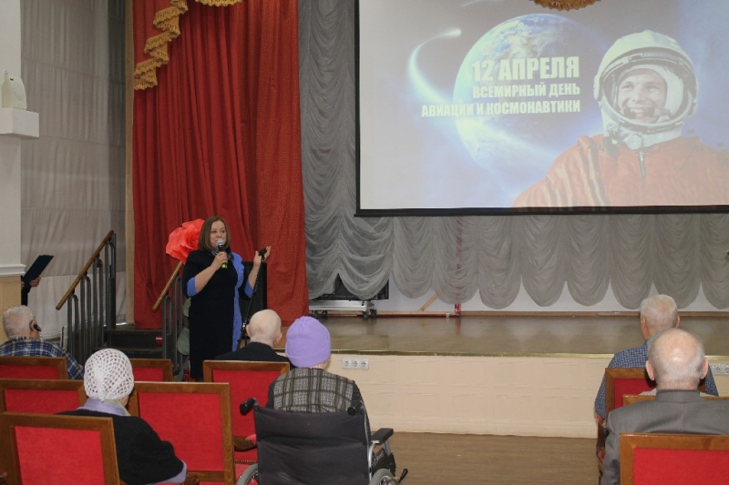 В честь памятной даты 12 апреля - Дня авиации и космонавтики в актовом зале было проведено литературно – тематическое мероприятие. На экране демонстрировались кадры хроники тех событий. Ветераны поделились своими воспоминаниями, как они впервые узнали о полете человека в космос. Со словами поздравления к ветеранам обратились директор Г.И. Михайличенко, председатель Совета ветеранов Д.Б. Романов и Игорь Григорьевич Белик – участник Великой Отечественной войны, заслуженный инженер – изобретатель, авиаконструктор – он работал в КБ С.П. Королева. И в своем выступлении Игорь Григорьевич отметил: «Для меня это знаменательная дата также значима, как и праздник День Победы!»