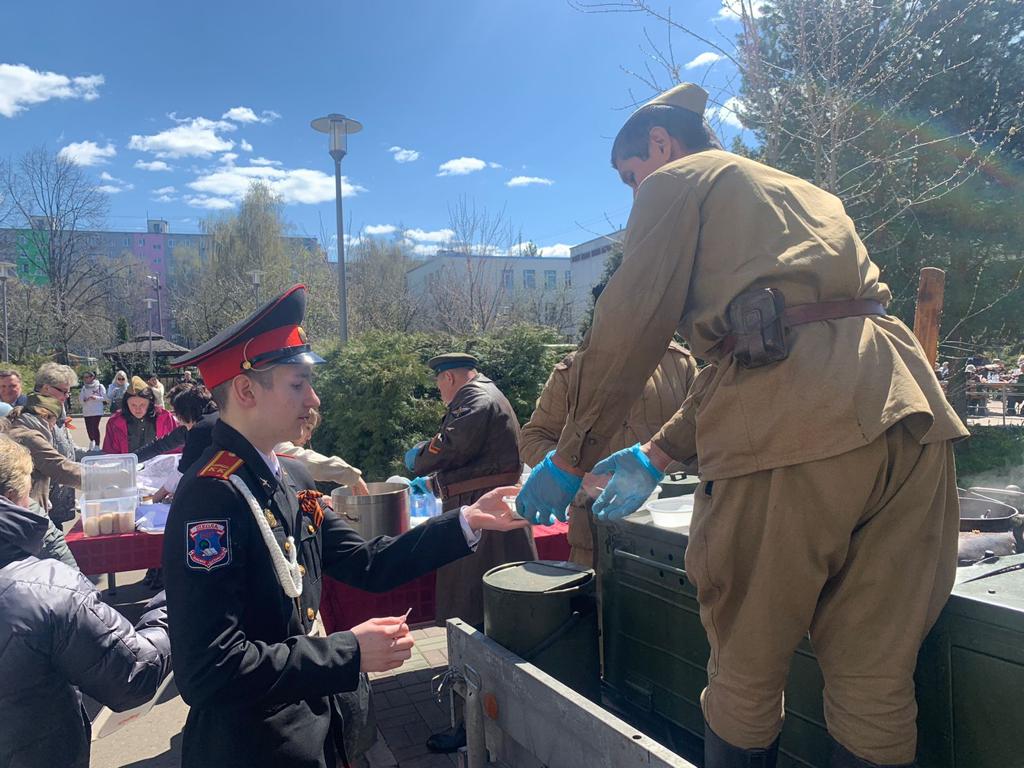 Все дальше уходят годы Великой Отечественной войны, мы все также помним о том, какой ценой досталась нашим дедам и прадедам эта Победа. Победный май начал свой путь по стране. 5 мая для наших ветеранов была подготовлена праздничная программа «Мы воины славной страны!» Мероприятие началось с торжественного выноса Знамени Победы и флага Москвы, юнармейцами школы №1515и кадетами школы №1507.Присутствующие гости обратились к ветеранам со словами благодарности, за мирное небо, за бессмертный подвиг во имя жизни. После возложения цветов к мемориалу, все гости смогли сфотографироваться на фоне военной техники, отведать полевую кашу, приготовленную по особому рецепту военнослужащих военно - патриотического клуба «Дивизион». Послушать и исполнить совместно песни под баян, пообщаться, и закружиться в военном танго, прослушать «Василия Теркина» из уст четвероклассников. «Мы благодарим организаторов данного мероприятия, за возможность сегодня окунаться в атмосферу послевоенного времени, встретиться и обняться со своими друзьями, отдать дань уважения погибшим солдатам». Так тепло отзывалась председатель Совета ветеранов Геронтологического центра «Теплый Стан» - Г.А. Митрофанова.