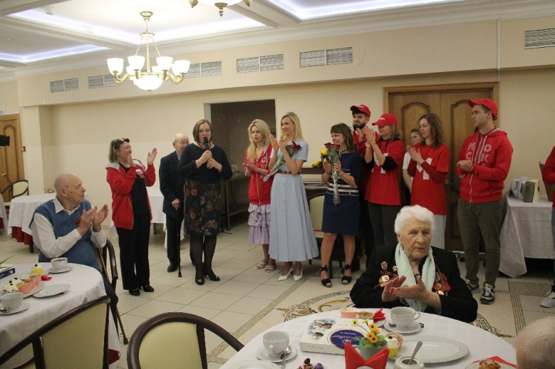 8 мая в преддверии 77-й годовщины Победы в Великой Отечественной войне наш центр принимал гостей, подарки, цветы, море внимания и заботы. Мероприятие прошло в рамках фестиваля «Московская весна». Праздничную атмосферу готовили за несколько дней до праздника. На фестивале «Московская весна» юные участники делали открытки и писали поздравления для ветеранов. Именно их и вручили ветеранам. Мастера студии российского визажиста Елены Крыгиной организовали для подопечных «Лабораторию красоты» с услугами парикмахера и других специалистов по уходу, перед концертом все жители центра попали на фотосессию, а потом наслаждались концертом. Визажист Елена Крыгина рассказала, что для нее такое взаимодействие с участниками ВОВ – невероятное счастье: