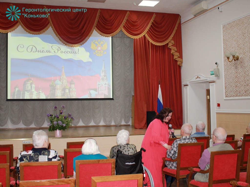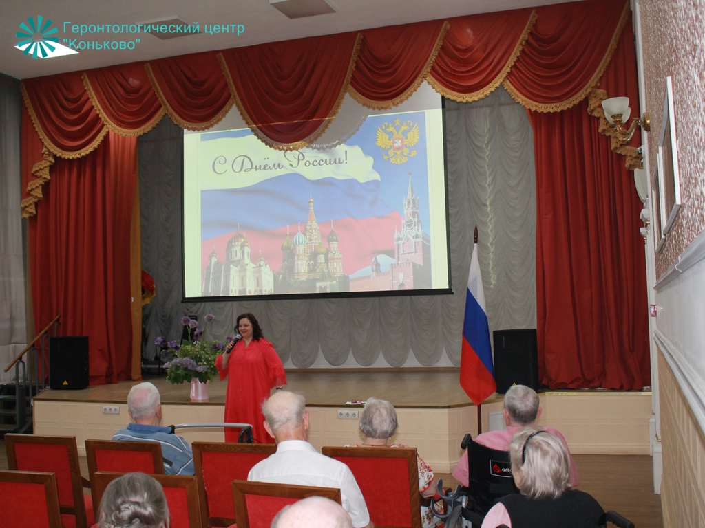 День России, который отмечается 12 июня, — один из самых молодых отечественных праздников. Но для долгожителей Центра «Коньково» - это любимый праздник, поэтому каждый год мы традиционно отмечаем его вместе. В этом году для зрителей прозвучало много душевных песен, стихов о России, о красоте и бескрайних просторах Родины. Ведущая концерта - Елена Филиппова сделала большой акцент на видео-презентации о нашей необъятной стране. Ветераны отметили, что Родина становится с каждым годом всё краше и современнее: «Наша страна сильна не только своими недрами и победами, она сильна людьми, которые делают её уникальной и неповторимой. И мы гордимся, что являемся неотъемлемой частью Великой России».