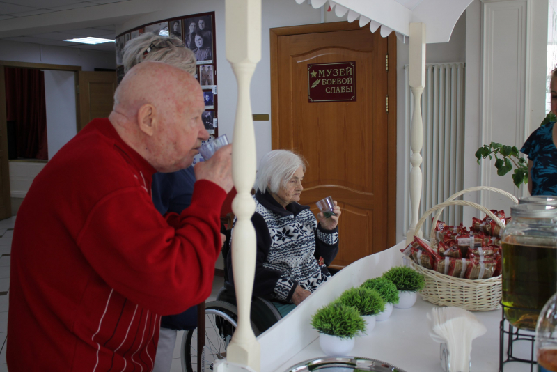 В этот день для наших ветеранов на сцене блистала кавер-группа, исполнившая незабываемые песни времён молодости наших дорогих ветеранов. Выступление Елены Коленцевой и Анны Сорокиной стало настоящим подарком. Красота и юность девушек, чудесные голоса и искренность исполнения подарили много радости, зарядили позитивом. В фойе ожидало угощение: освежающие лимонады и ароматные пряники. Искренние слова благодарности от ветеранов стали лучшим подтверждением того, что праздник удался.